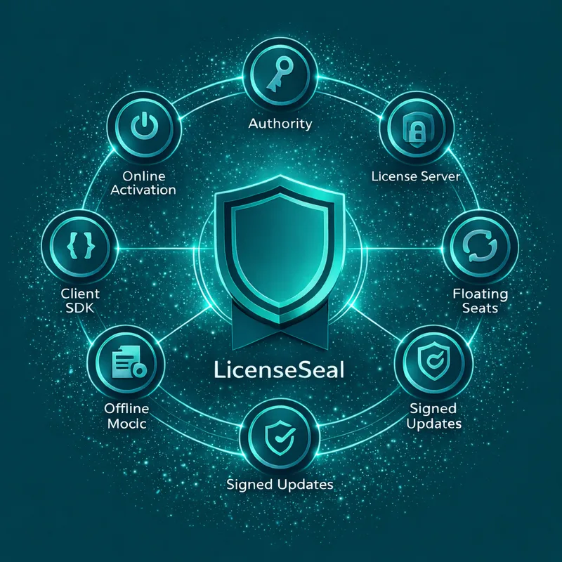 Offline-Ready, Developer-First LicensingLicenseSeal provides offline-ready activation, floating seat control, and usage insights, powered by a centralized authority and a high-performance runtime license server.
